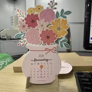 – Thiết kế độc nhất vô nhị: Tạo hình lọ hoa duyên dáng, mỗi tờ lịch là một “bông hoa” rực rỡ.